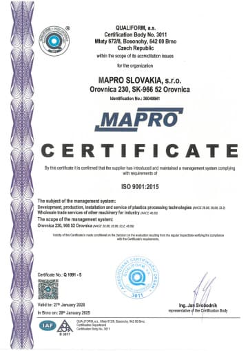 Development, production, installation and service of plastics processing technologies (SK-NACE 28.96; 28.99; 33.2)