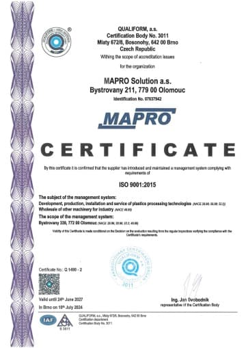 Development, production, installation and service of plastic processing technologies (CZ-NACE 28.96; 28.99; 33.2)